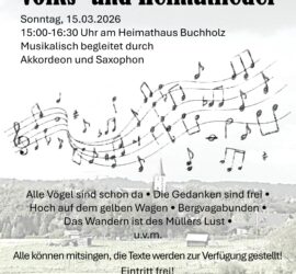 Wir freuen uns schon sehr, dass wir am 15.3. mit euch gemeinsam Volks- und Heimatlieder singen. Wie ihr uns kennt, haben wir uns, gemeinsam mit dem Kulturteam Buchholz, etwas ganz besonderes ausgedacht. Seid ihr dabei?